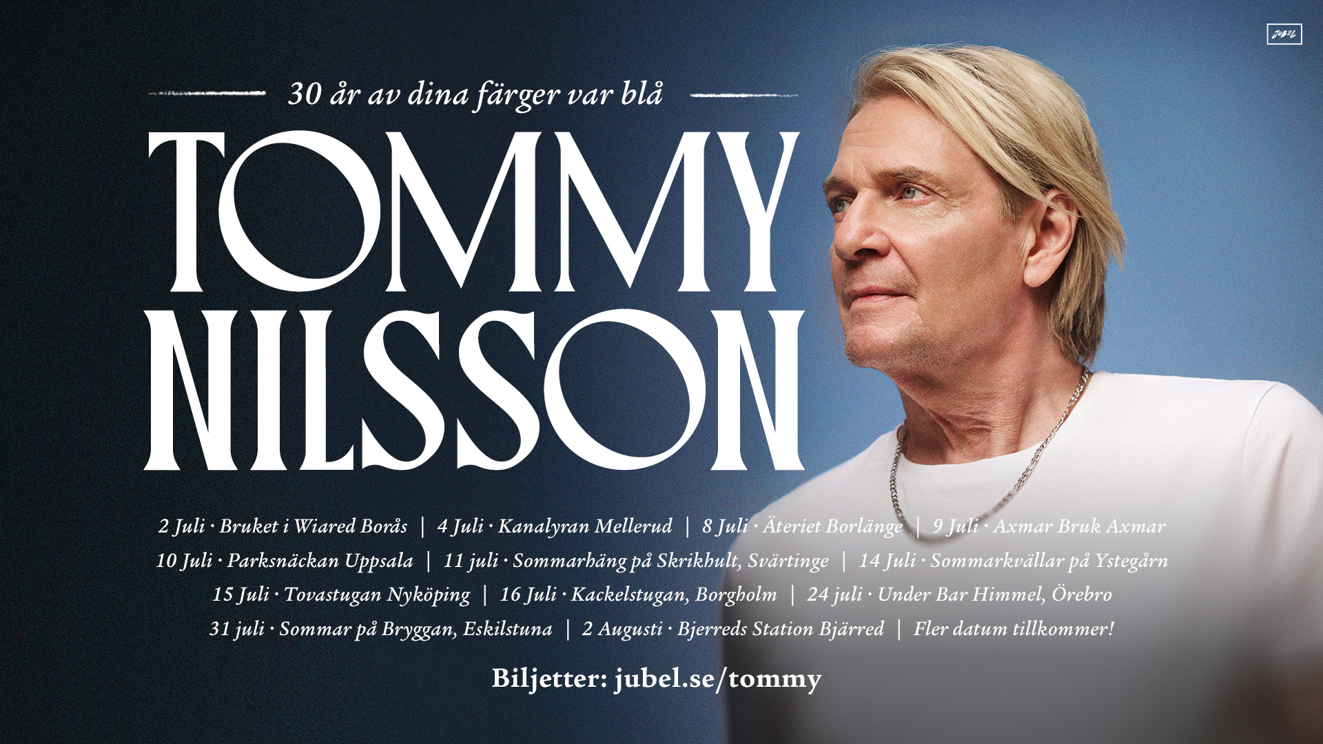 Sommaren 2026 genomför Tommy Nilsson en omfattande Sverigeturné som markerar 30-årsjubileet av albumet Så nära där singeln Dina färger var blå, som idag är ett klassiskt stycke svensk pophistoria, blev ett av hans mest betydelsefulla verk. Turnén 2026 uppmärksammar både jubileet och det fortsatta musikskapande som präglat hans senare år.